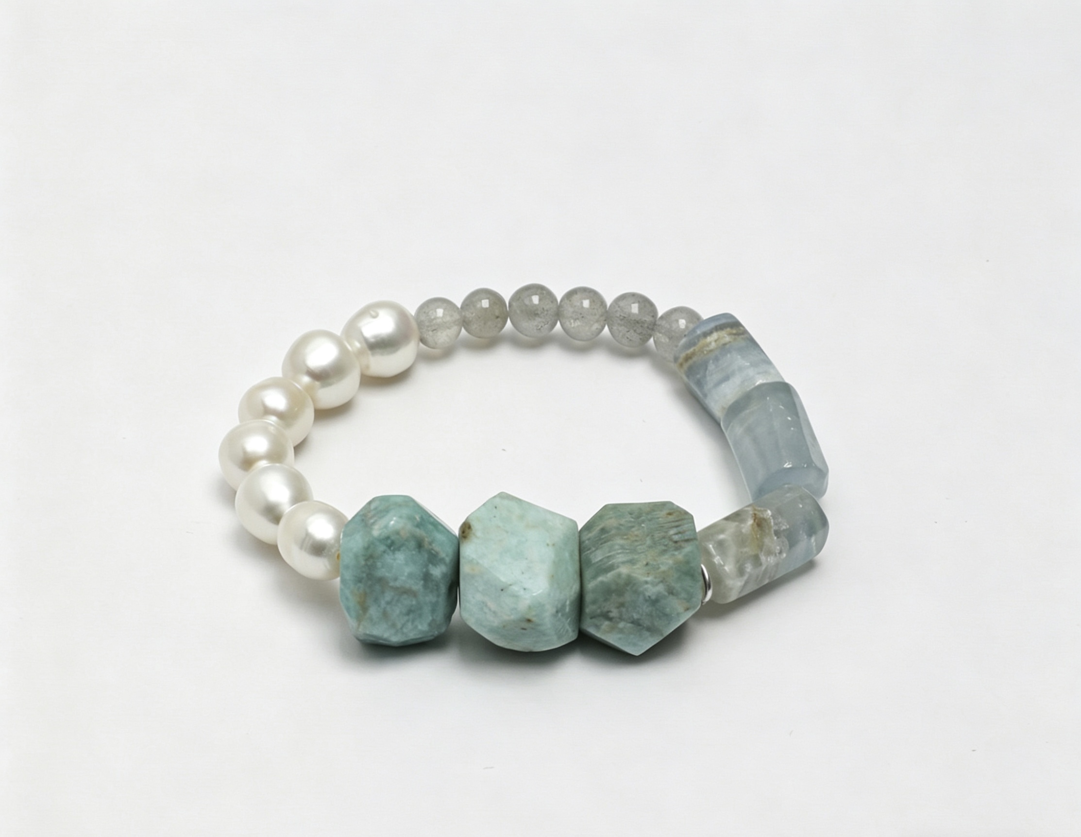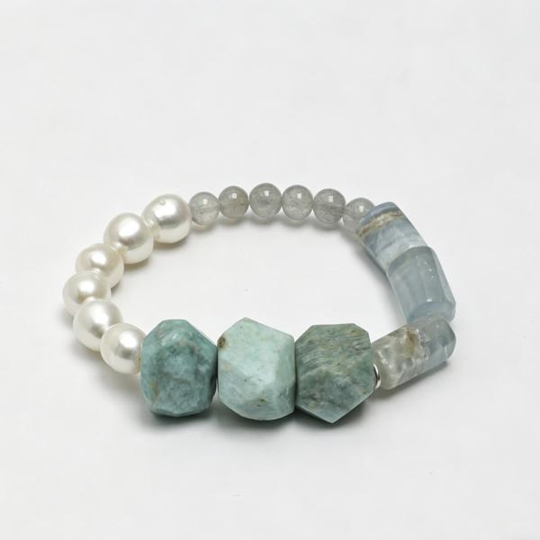 The Water Flow Emotional Healing Bracelet is your daily anchor for emotional calm, intuitive clarity, and gentle healing. Infused with Water Element energy, this formula blends Amazonite, Blue Calcite, Grey Moonstone, and Freshwater Pearls to dissolve stress, quiet the mind, and align you with life's natural flow.